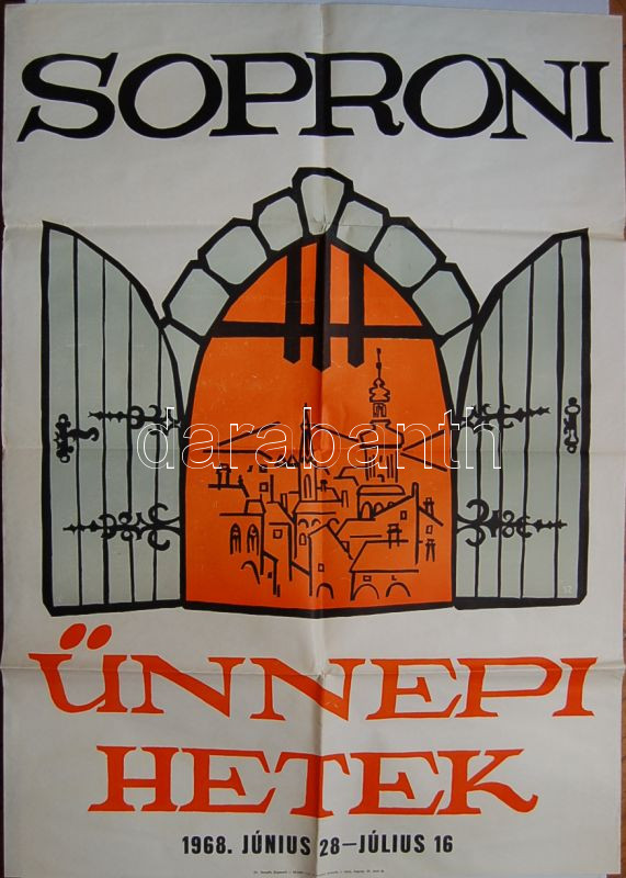1968 Sopron ünnepi hetek színes plakát https://www.darabanth.com/hu/22-Gyorsarveres/22.0/Festmeny-mutargy-papirregiseg-egyeb/Nyomtatvanyok~183/1968-Sopron-unnepi-hetek-szines-plakat~II42823