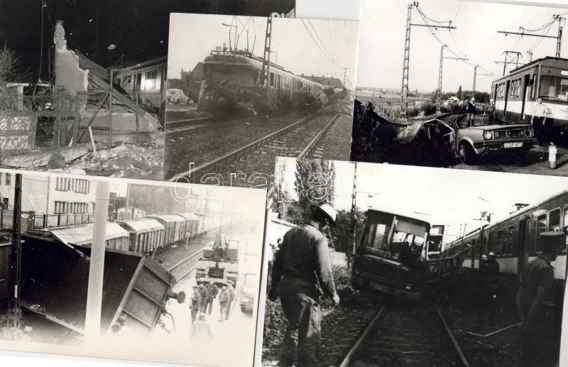 Leírás: 1976-1995 Budapesti HÉV és vasúti katasztrófák 5 klf fotó