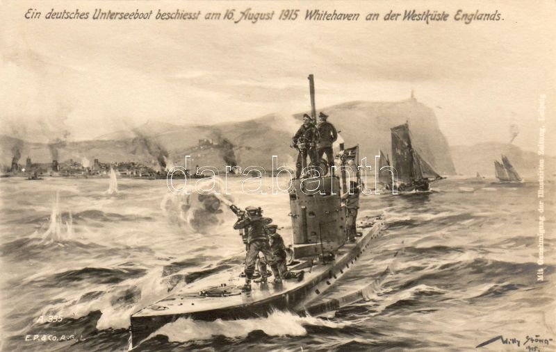 Német tengeralattjáró Anglia partjainál I. Világháborús katonai lap T1 https://www.darabanth.com/hu/22-Gyorsarveres/22.0/Kepeslapok/Kepeslapok~166/Nemet-tengeralattjaro-Anglia-partjainal-I-Vilaghaborus-katonai-lap-T1~II41445