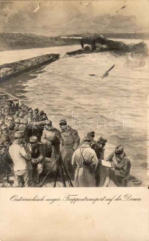 Osztrák-magyar csapatszállítás a Dunán I. Világháborús katonai lap T1 https://www.darabanth.com/hu/22-Gyorsarveres/22.0/Kepeslapok/Kepeslapok~166/Osztrak-magyar-csapatszallitas-a-Dunan-I-Vilaghaborus-katonai-lap-T1~II41441