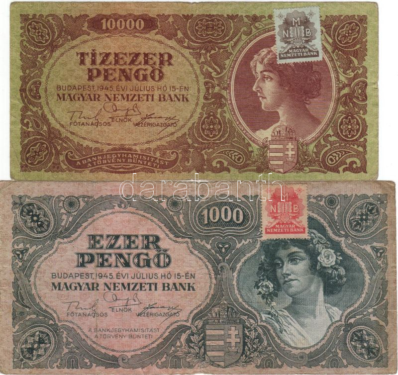 1945 1000P 3-as egyenes felső résszel + 10.000P mindkettőre lemezhibás... https://www.darabanth.com/hu/22-Gyorsarveres/22.0/Numizmatika/Magyar-es-kulfoldi-bankjegyek~167/1945-1000P-3-as-egyenes-felso-resszel-plus-10000P-mindkettore-lemezhibas-belyeg-ragasztva-TII-~II40336