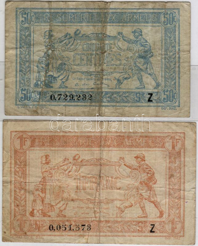 Franciaország 1914-18 körül 50c, 1Fr katonai szükségpénz T:II/III https://www.darabanth.com/hu/22-Gyorsarveres/22.0/Numizmatika/Magyar-es-kulfoldi-bankjegyek~167/Franciaorszag-1914-18-korul-50c-1Fr-katonai-szuksegpenz-TIIIII~II41889