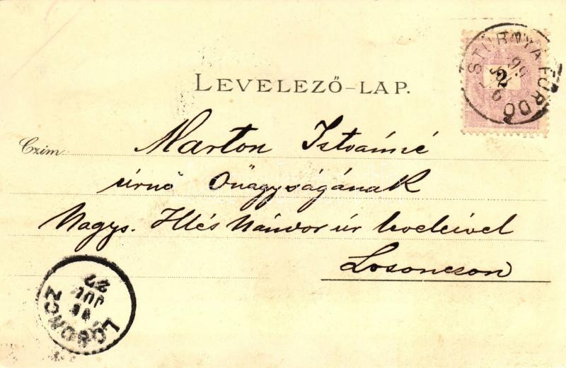 Leírás: 1899 Körmöcbánya, Kremnica, Főtér, Vadászkürt; kiadja Ritter / floral litho