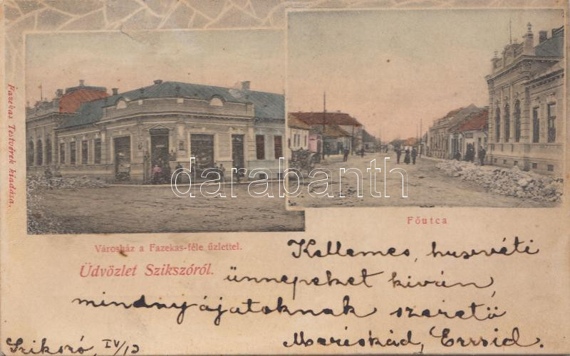 Leírás: Szikszó, Városház a Fazekas-üzlettel, Fő utca; a Fazekas testvérek kiadása