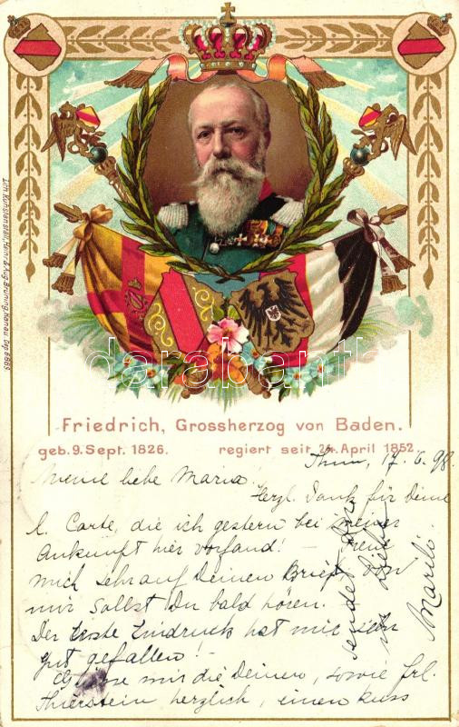 1898 Friedrich Grossherzog von Baden https://www.darabanth.com/hu/22-Nagyaukcio/22.1/Motivum-kepeslapok/Uralkodo-Politikus~8730/1898-Friedrich-Grossherzog-von-Baden~II1039386