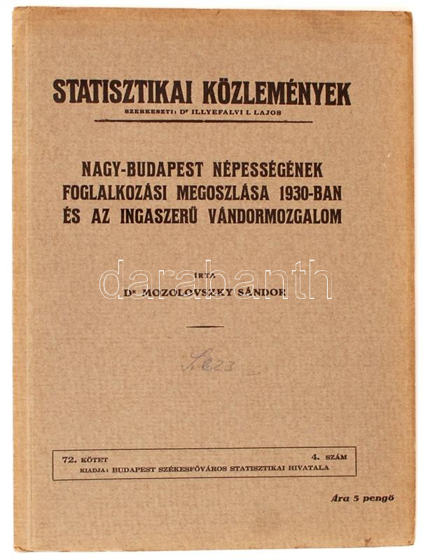 Dr. Mozolovszky Sándor: Nagy-Budapest népességének foglalkozási megosz... https://www.darabanth.com/hu/22-Nagyaukcio/22.1/Mutargy-papirregiseg/Konyvek-Utazas-varosok~8665/Dr-Mozolovszky-Sandor-Nagy-Budapest-nepessegenek-foglalkozasi-megoszlasa-1930-ban-ls-az-inga~II1096456