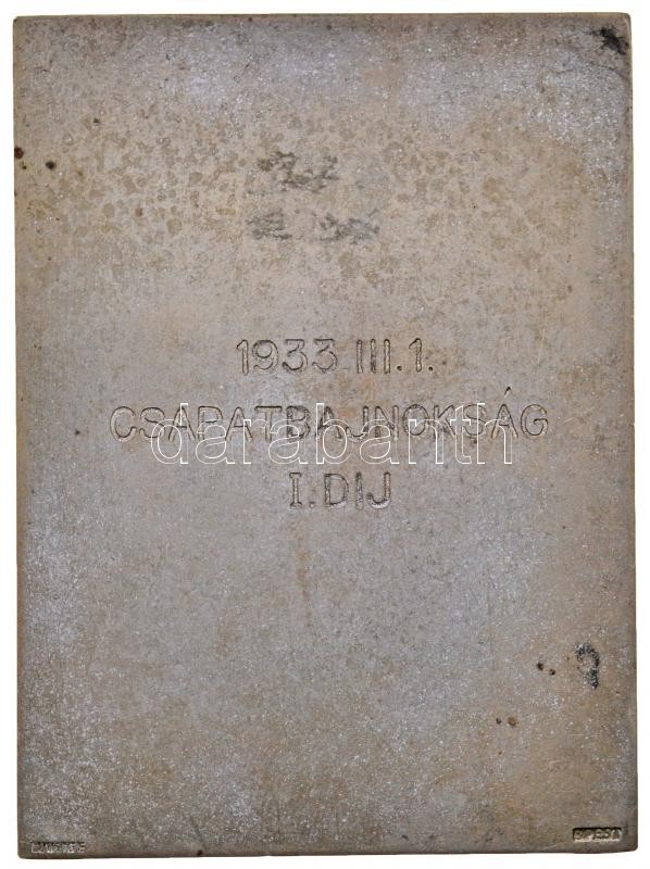 Hungary 1933. "Hungarian Ski Association / 1933.III.1. Team Championship Ist Award" metal award plaque. Sign.: Lajos Berán (71x52mm) C:XF