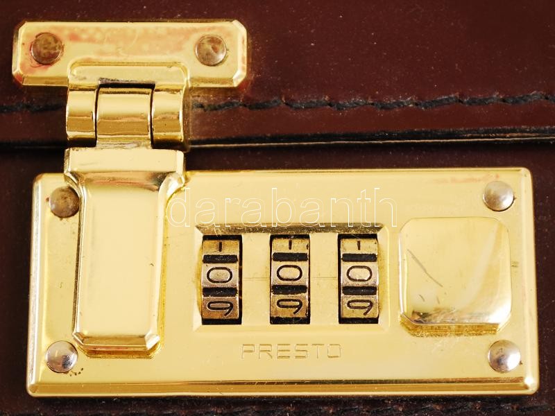 Presto számzáras táska, bőr, jelzett, jó állapotban, 32×26 cm https://www.darabanth.com/hu/220-Gyorsarveres/220.0/Festmeny-mutargy-papirregiseg-egyeb/Bolhapiac~10034/Presto-szamzaras-taska-bor-jelzett-jo-allapotban-32C39726-cm~II943044