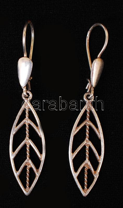 Leírás: Levél alakú ezüst (Ag) fülbevaló, jelzett, 2 g