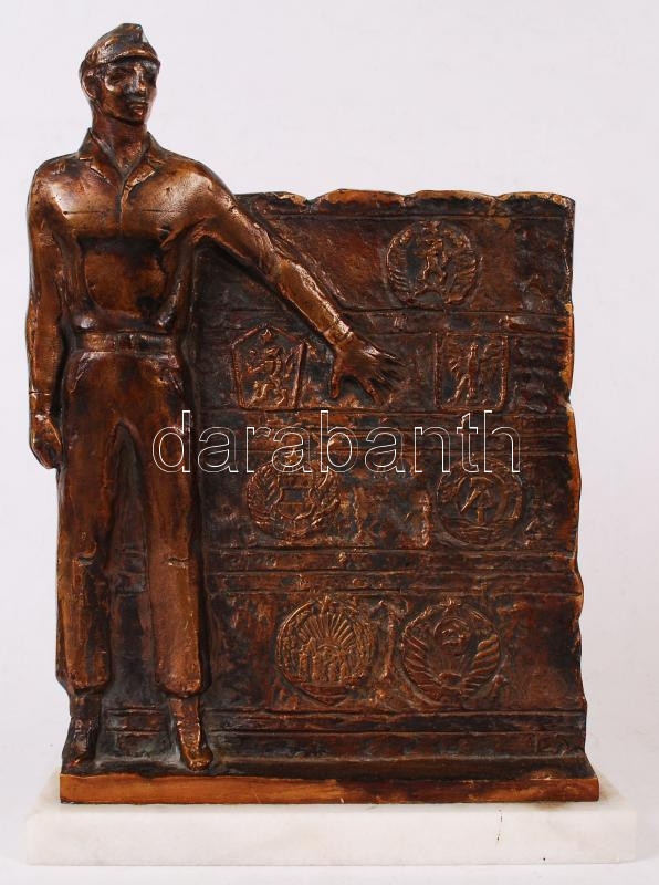 Leírás: P.J. monogrammal: KGST. Bronz, jelzett, márvány talapzaton, m:31 cm, h:24 cm