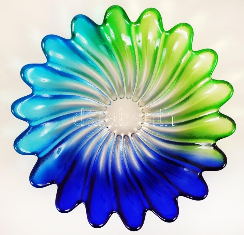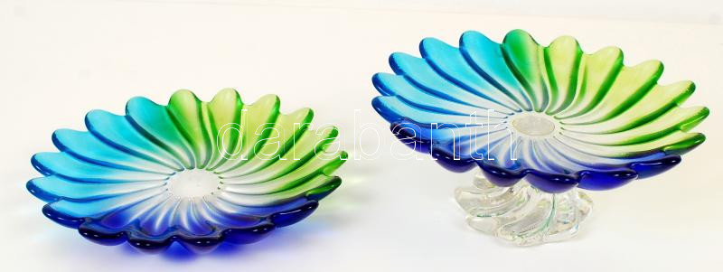 Leírás: Dekoratív talpas üveg kínálótál, és tál, egyiken apró karcolások d: 21cm, m: 9cm