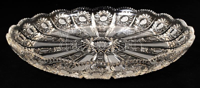 Leírás: Ólomkristály süteményes tál, csiszolt, metszett, hibátlan, d:30 cm