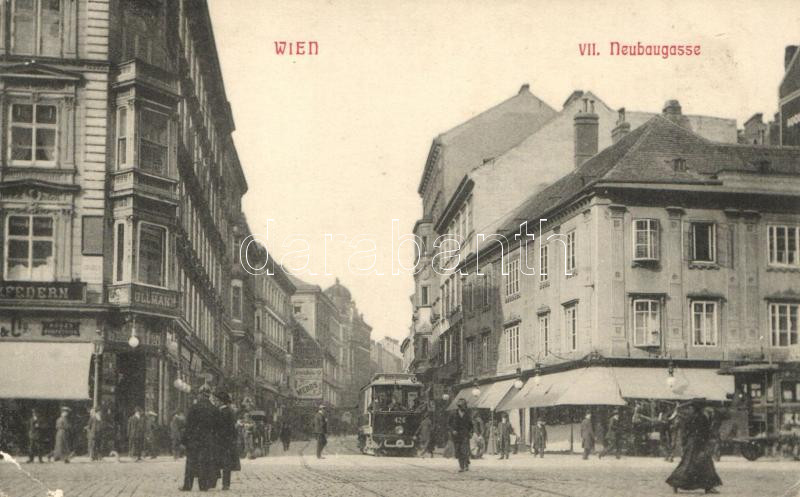 Vienna, Wien VII. Neubaugasse / street, shop of Ullmann, tram (EK) https://www.darabanth.com/hu/220-Gyorsarveres/220.0/Kepeslapok/Ausztria~6000296/Vienna-Wien-VII-Neubaugasse-street-shop-of-Ullmann-tram-EK~II945570