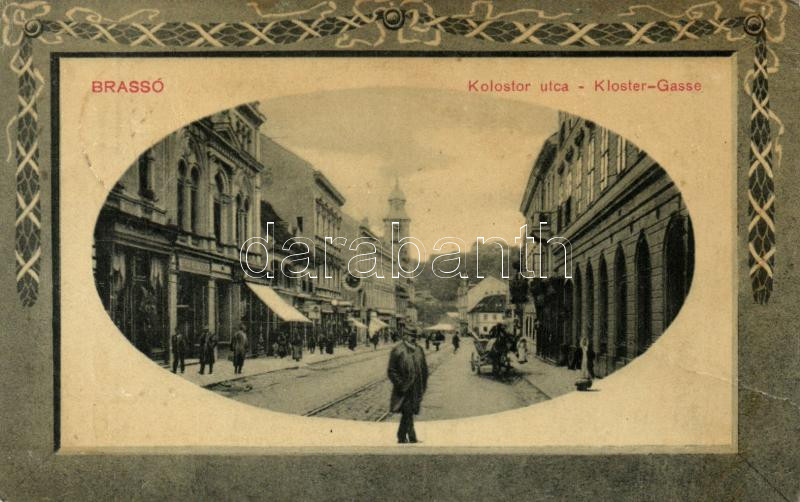 Brassó, Kronstadt; Kolostor utca / street Art Nouveau (fa) https://www.darabanth.com/hu/220-Gyorsarveres/220.0/Kepeslapok/Erdely~30007/Brasso-Kronstadt-Kolostor-utca-street-Art-Nouveau-fa~II945501