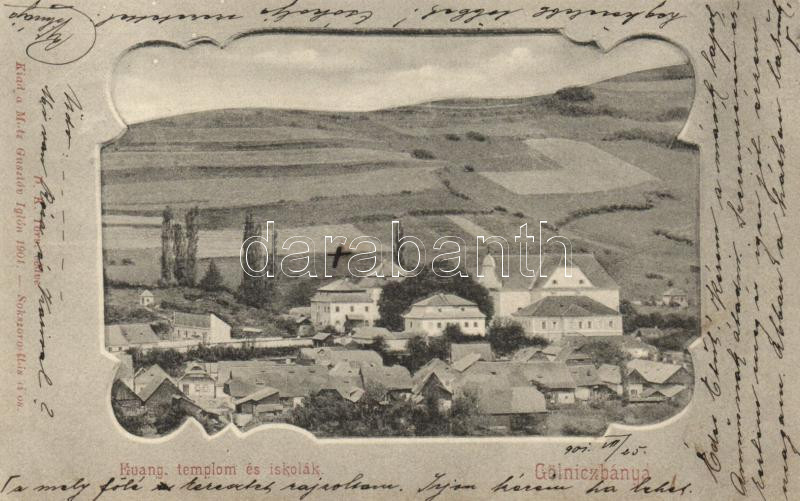Gölnicbánya, Evangélikus templom és iskolák / church and school (EK) https://www.darabanth.com/hu/220-Gyorsarveres/220.0/Kepeslapok/Felvidek~30008/Golnicbanya-Evangelikus-templom-es-iskolak-church-and-school-EK~II943609