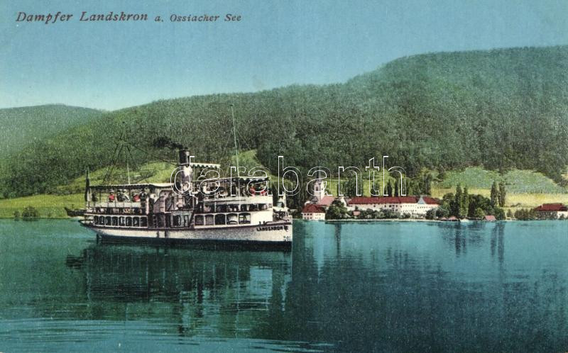 Dampfer Landskron, Ossiacher See, Nr. 915. https://www.darabanth.com/hu/220-Gyorsarveres/220.0/Kepeslapok/Hajo~6000317/Dampfer-Landskron-Ossiacher-See-Nr-915~II945904