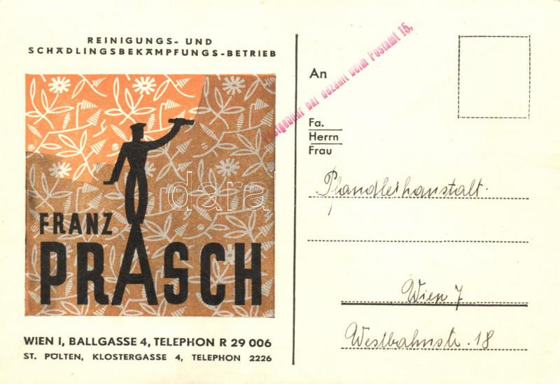 Leírás: Reinigungs- und Schädlingsbekämpfungs Betrieb, Franz Prasch, advertisement (EK)