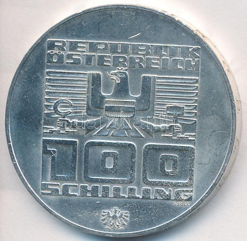 Austria 1974. 100 Schilling Ag "Winter Olympics Innsbruck / Ski take-off ramp" C:XF