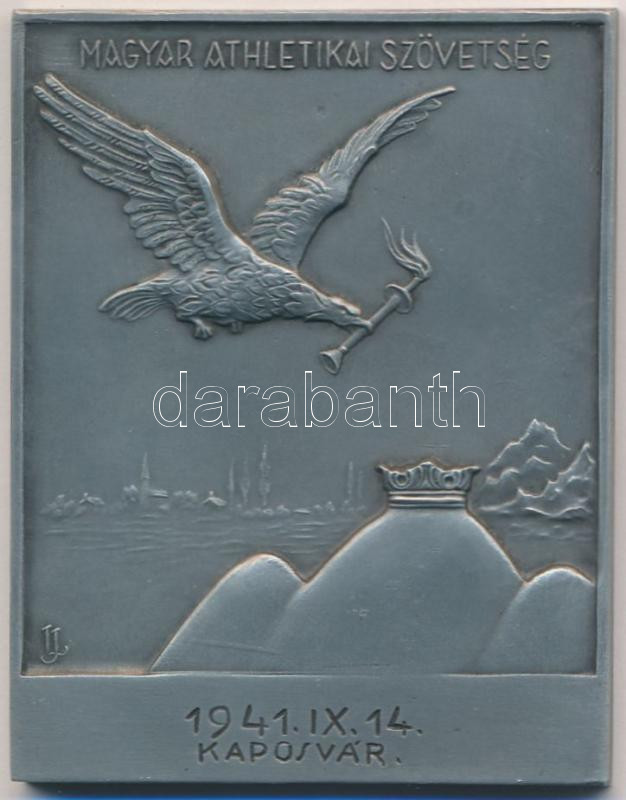 Leírás: 1941. "Magyar Athletikai Szövetség - 1941.IX.14. Kaposvár" fém plakett eredeti dísztokban. Szign.:LJ (76x59mm) T:2