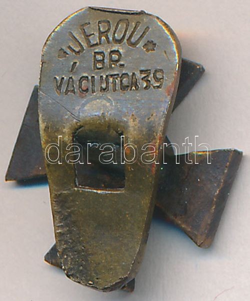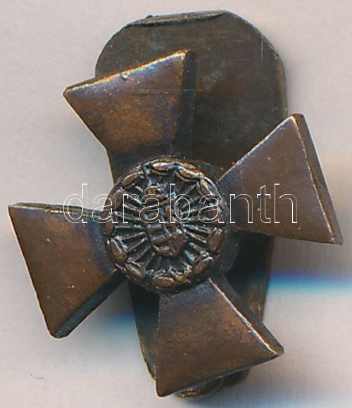 Leírás: 1944. "Bronz Polgári Honvédelmi Érdemkereszt" bronzozott hadifém gomblyuk jelvény "Jerou Bp. Váci utca 35." gyártói jelzéssel T:2