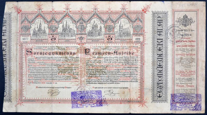 Budapest 1886. "Egyházi Műemlék Alap" Sorsjegykölcsöne 5Ft-ról a budapest-lipótvárosi bazilika kiépítésére s egyházi műemlékek fenntartására, felülbélyegzésekkel T:III