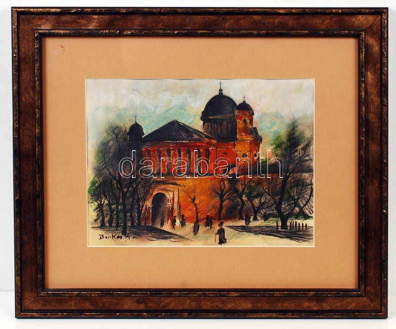 Leírás: Berkes jelzéssel: Esztergom. Pasztell, papír, üvegezett keretben, 19×25 cm