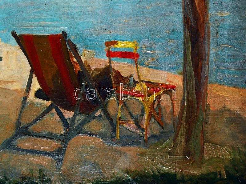 Leírás: Csáki-Maronyák József (1910-2002): A Tihanyi kikötő. Olaj, vászon, jelzett, keretben, 80×100 cm