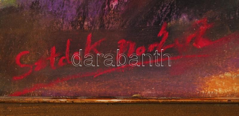 Leírás: Sztelek jelzéssel: Városszélen. Pasztell, papír, üvegezett keretben, 45x34cm