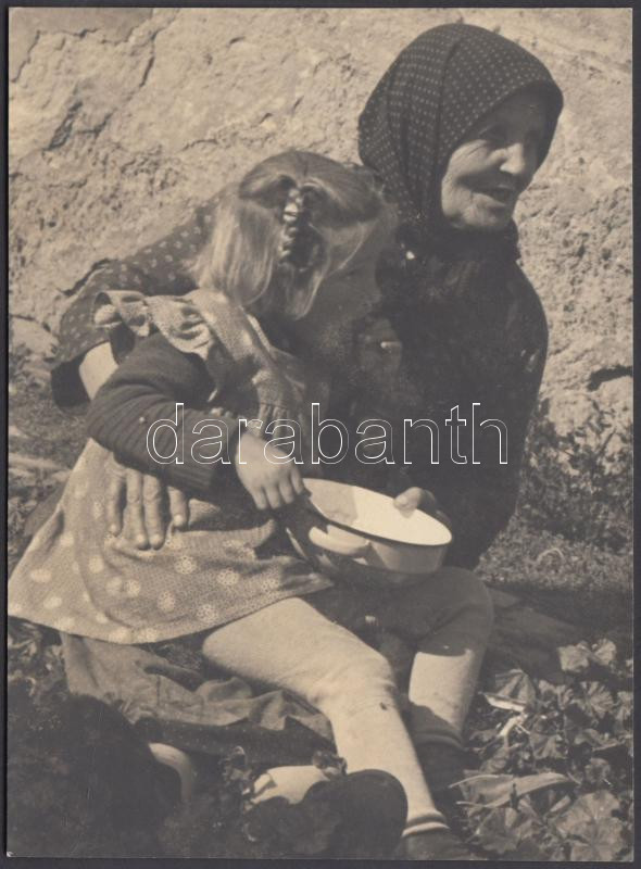 Leírás: cca 1930 Egyél kis unokám, szociofotó, 13x18 cm