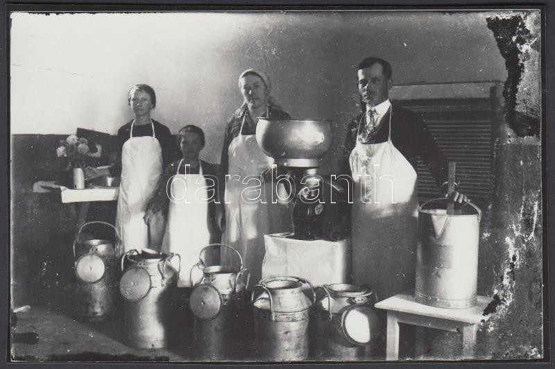 cca 1930 Lőcsei Árpád kecskeméti fényképész felvétele egy tejbegyűjtő és feldolgozó állomásról (Bácsbokod környékéről), későbbi másolat a szerző hagyatékában levő, hasonló méretű üveglemez negatívról, 10x15 cm