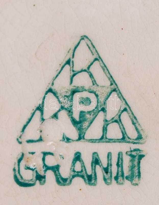 Leírás: Régi "Gránit" kerámia edény tetővel, sérült, jelzett, m: 18 cm, d: 18 cm; "Gránit"kerámia bögre, m: 9 cm, d: 10 cm