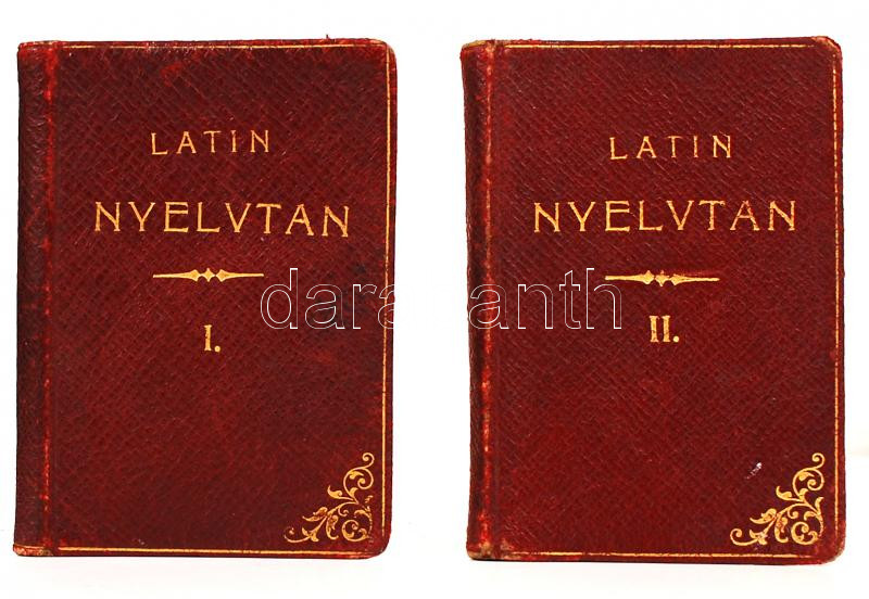 Latin nyelvtan dióhéjban I-II.(Alaktan, Mondattan). Negyedik kiadás. Veszprém, 1897-1899, Krausz Armin Fia könyvkereskedése. Kiadói aranyozott egészbőr kötés, kissé kopott állapotban.