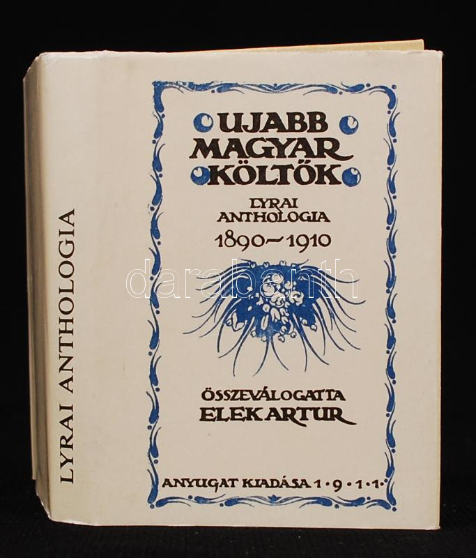 Ujabb magyar költők. Lyrai anthologia 1890-1910. Vál. Elek Artur. Bp., 1988. Az 1911-es Nyugat-kiadás reprintje. Minikönyv, az 54. sz. Ságvári Endre Nyomdaipari Műszaki Szakközépiskola gyakorlópéldánya, kereskedelmi forgalomba nem került. Kartonált papírkötésben, papír védőborítóval, jó állapotban.