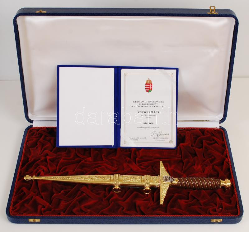 2002 A Belügyminiszter dr. Pintér Sándor által nyugalmazott határőrnek... https://www.darabanth.com/hu/221-Gyorsarveres/221.0/Festmeny-mutargy-papirregiseg-egyeb/Militaria~1600005/2002-A-Belugyminiszter-dr-Pinter-Sandor-altal-nyugalmazott-hatarornek-adomanyozott-disztor~II953884