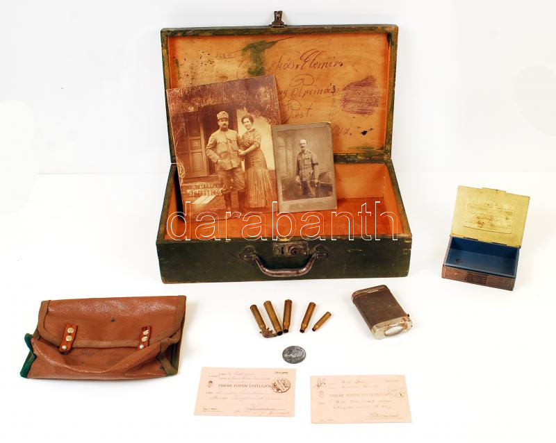 Katonaláda, benne katonai képek, tábori posta / Military box, 25x42cm https://www.darabanth.com/hu/221-Gyorsarveres/221.0/Festmeny-mutargy-papirregiseg-egyeb/Militaria~1600005/Katonalada-benne-katonai-kepek-tabori-posta-Military-box-25x42cm~II937204