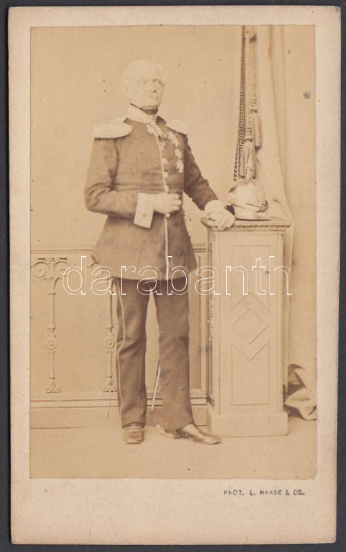 cca 1870 L. Haase (Berlin): Friedrich von Wrangel (1784-1877) generalfeldmarschall (vezértábornagy) a porosz hadseregben, keményhátú katonai fénykép vizitkártya méretben, 10x6 cm /