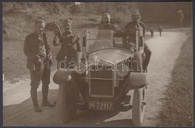 cca 1920 Négy vidám katona automobilos kimenője, ismeretlen katona neg... https://www.darabanth.com/hu/221-Gyorsarveres/221.0/Festmeny-mutargy-papirregiseg-egyeb/Militaria~1600005/cca-1920-Negy-vidam-katona-automobilos-kimenoje-ismeretlen-katona-negativokbol-allo-hagyate~II950662