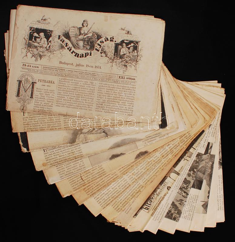 1874-1901 a Vasárnapi Újság 15 száma korabeli aktuális hírekkel, érdek... https://www.darabanth.com/hu/221-Gyorsarveres/221.0/Festmeny-mutargy-papirregiseg-egyeb/Nyomtatvanyok~1600009/1874-1901-a-Vasarnapi-Ujsag-15-szama-korabeli-aktualis-hirekkel-erdekes-irasokkal-toredC3~II954493
