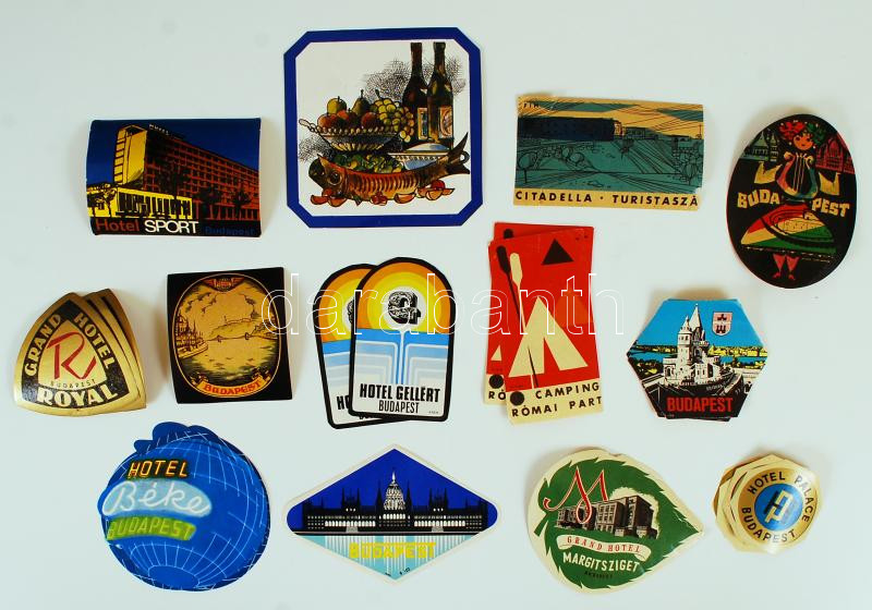 Budapesti hotel reklám matricái, bőrönd címkéi, 29 db https://www.darabanth.com/hu/221-Gyorsarveres/221.0/Festmeny-mutargy-papirregiseg-egyeb/Reklam~1600029/Budapesti-hotel-reklam-matricai-borond-cimkei-29-db~II954276