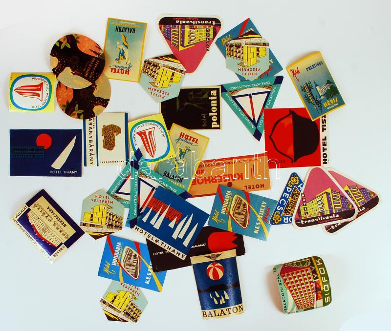 Leírás: Vidéki és külföldi hotel reklám matricái, bőrönd címkéi, 31 db