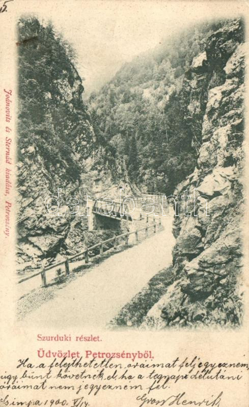Leírás: Petrozsény, Szurduki szoros, híd, kiadja Joánovits és Sternád / gorge, bridge (EK)