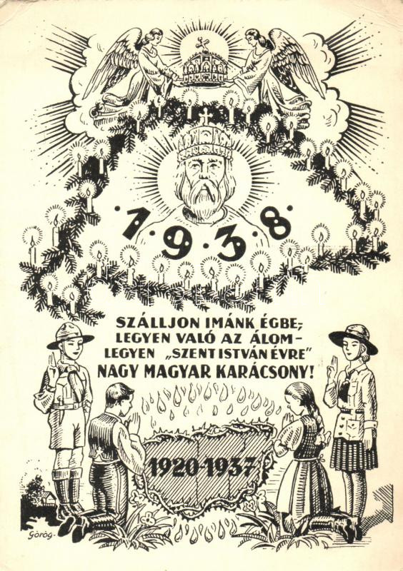 1938 Szent István év, cserkészek, magyar folklór, irredenta propaganda, karácsony / Year of Stephen I of Hungary, scouts, Hungarian folklore, irredenta propaganda, Christmas s: Görög (EB)