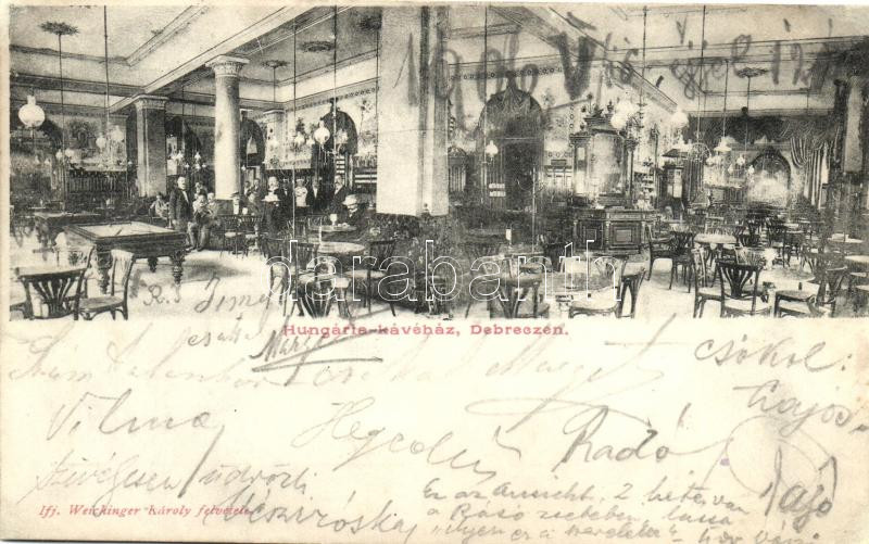 Debrecen, Hungária kávéház, belső (vágott / cut) https://www.darabanth.com/hu/221-Gyorsarveres/221.0/Kepeslapok/Magyarorszag~400006/Debrecen-Hungaria-kavehaz-belso-vagott-cut~II952126
