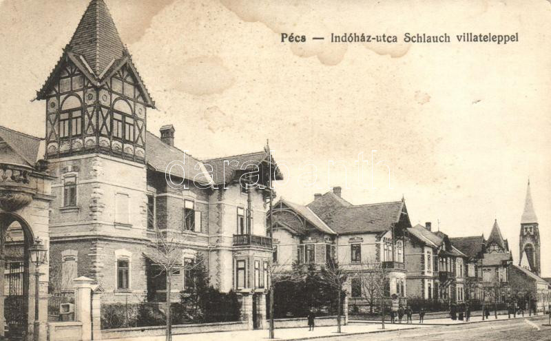 Pécs, Indóház utca, Schlauch villatelep, Karpf Berta kiadása https://www.darabanth.com/hu/221-Gyorsarveres/221.0/Kepeslapok/Magyarorszag~400006/Pecs-Indohaz-utca-Schlauch-villatelep-Karpf-Berta-kiadasa~II953500