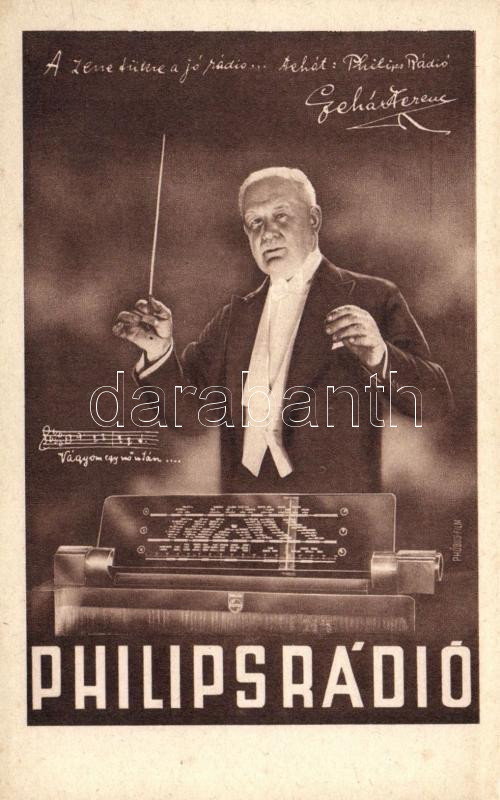 Philips Radio reklámja, Lehár Ferenc / radio advertisement https://www.darabanth.com/hu/221-Gyorsarveres/221.0/Kepeslapok/Reklam~1600134/Philips-Radio-reklamja-Lehar-Ferenc-radio-advertisement~II955142