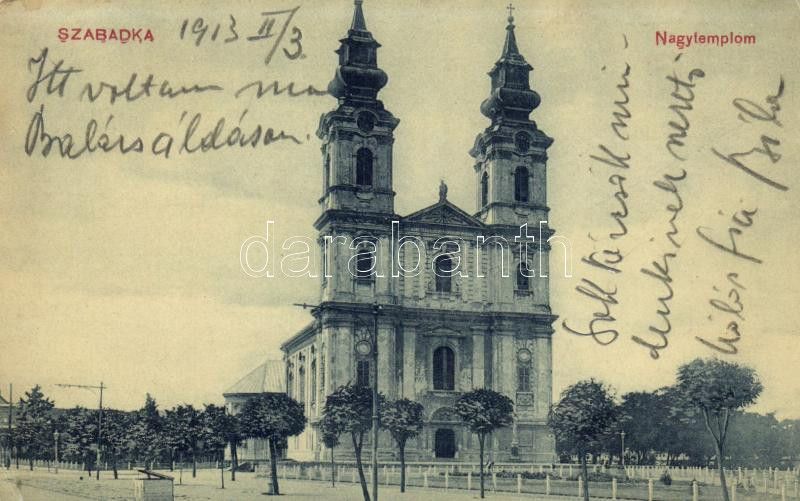 Szabadka, Nagytemplom; kiadja Papíráruház Szabadka / church https://www.darabanth.com/hu/221-Gyorsarveres/221.0/Kepeslapok/Vajdasag~400011/Szabadka-Nagytemplom-kiadja-Papiraruhaz-Szabadka-church~II957254