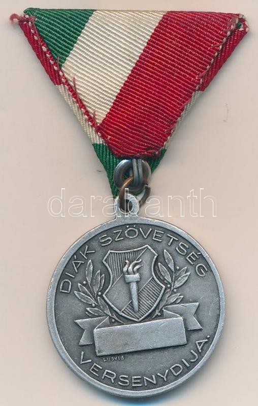 Leírás: DN "Diák Szövetség Versenydíja" fém díjérem mellszalagon. Szign.: Ludvig (35mm) T:2,2-