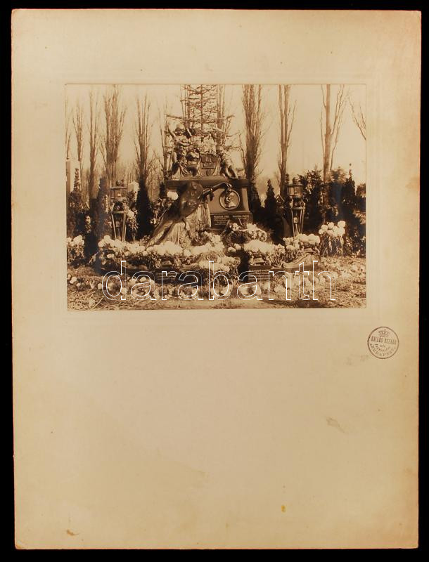 cca 1924 Kallós Oszkár felvétele Mahunka Imre bútorgyáros és nemzetgyűlési képviselő síremlékéről, pecséttel jelzett, fotóméret 17x22 cm, karton 40x30 cm