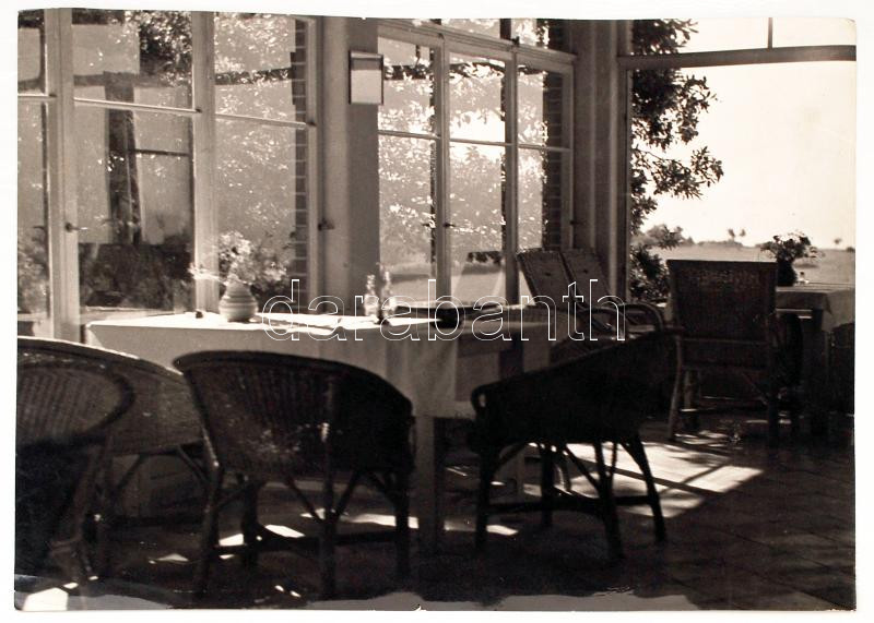 Leírás: cca 1935 Budapest, Svábhegy, a golf pálya társalkodó terasza, jelzetlen, feliratozott fénykép Reich Péter Cornel hagyatékából, 23x30 cm