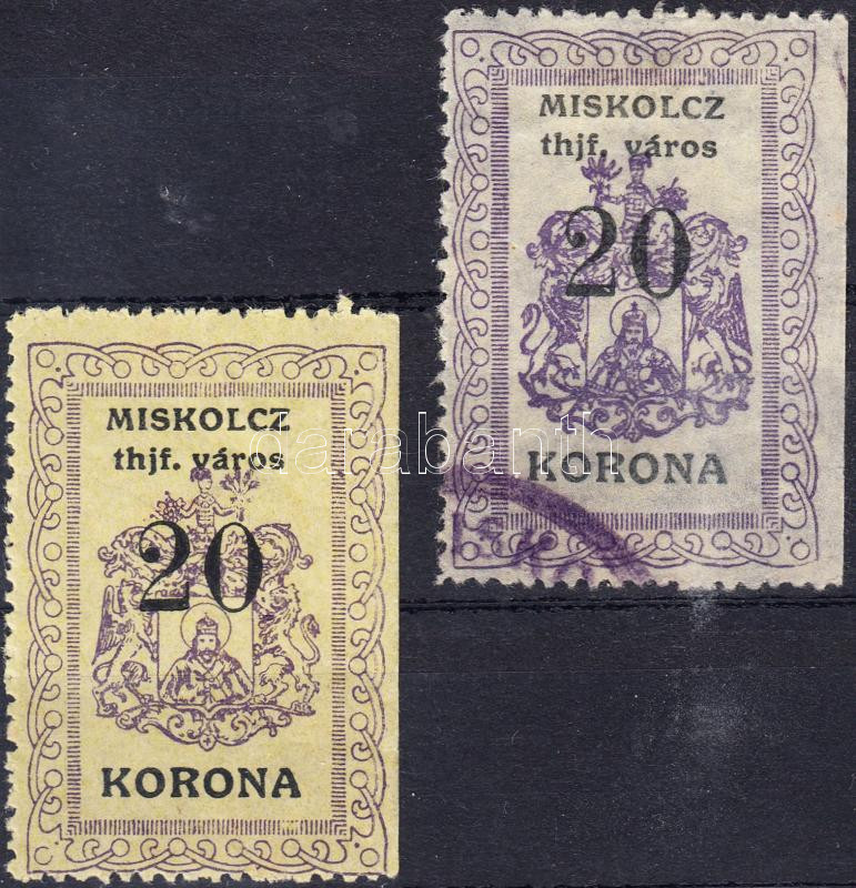 Leírás: 1921 Miskolc városi illetékbélyeg 2 klf 20K